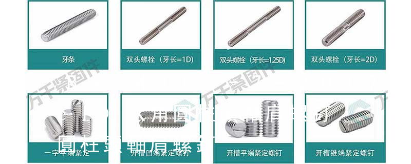 十二角螺栓、地角螺栓、膨脹螺栓、太陽能用雙段牙螺栓、內(nèi)六角圓柱頭螺絲、內(nèi)六角沉頭螺絲、半圓頭內(nèi)六角螺絲、內(nèi)六角圓柱頭軸肩螺絲、塞打螺絲、梅華槽螺絲、內(nèi)六角緊定螺絲、一字緊定螺絲、方頭緊定螺絲、滾花頭螺絲、蝶 有螺紋。內(nèi)六角螺絲軸肩是螺絲的一個重要部位,其需要有螺紋部分來增加摩擦力,因此是有螺紋的。內(nèi)六角圓柱頭軸肩螺釘也叫內(nèi)六角螺絲,也叫內(nèi)六角螺栓。其頭部是內(nèi)六角頭的。