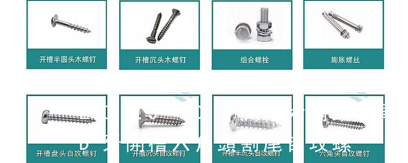 主要分類包括普通螺絲、機(jī)螺絲、自攻螺絲和膨脹螺絲三種。有頭螺釘Cap screw 過去限于全牙的扣件。六角頭螺釘Hex cap screw與大六角螺栓Hex bolt 顧名思義為頭部為六角型的外螺紋扣件,設(shè)計(jì)為使用扳手轉(zhuǎn)動(dòng)。依照ASME B18.2.