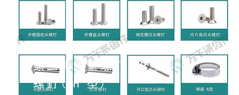 外扳擰:六角、六角法蘭面、六角凸緣、六角花形等;內(nèi)扳擰:一字槽、十字槽H型、十字槽Z型、十字槽F型、四方槽、復(fù)合槽、內(nèi)花鍵、內(nèi)六角花形、內(nèi)三角、內(nèi)六角、內(nèi)12角、離合器槽、六葉片型槽、高扭矩十字槽等。3、 PH=phillips 十字槽 sw/fw=split washer/flatwasher 彈墊 平墊 kep nut 鎖緊螺母 cementation 滲碳 acorn nut 蓋形螺母 螺絲頭型 Pan 圓頭(盤(pán)頭) Oval 半沉頭 H.W.H.. 六角小法蘭 H.W.F. 六角大法蘭 CSK 沙拉頭(沉頭) La