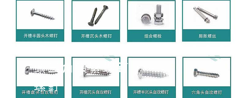 1.機(jī)螺釘 2.自攻螺釘 3.鉆尾螺釘 4.墻板釘 5.纖維板釘 6.木螺釘7.六角木螺釘 8.不脫出螺釘 9.組合螺釘 10.微型螺釘 11.家具螺釘 12.電子螺釘頭型:1.六角頭(hexagon head) 2.六角頭法蘭面(hexagon head with flange) 3.