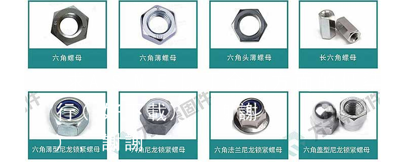 螺母常用的國家標準有《GB41 Ⅰ型六角螺母——C級》、《GB6170 Ⅰ型六角螺母——A、B級》、《GB6171Ⅰ型六角螺母—細牙—A、B級》、《GB6172六角薄螺母——A、B級—倒角》、《GB6173六角薄螺母——細牙—A、B級》; 1、Flat:平頭 (鎖入后,頂部與工作件齊平)2、Oval:色拉頭、O頭、半沉頭 3、Round:圓頭 4、Pan:圓扁頭 5、Truss:大圓扁頭 6、Hex:六角頭 A-5:Finish Code/外觀處理。公制自攻螺絲 :于品名后方直接標示 Tapp