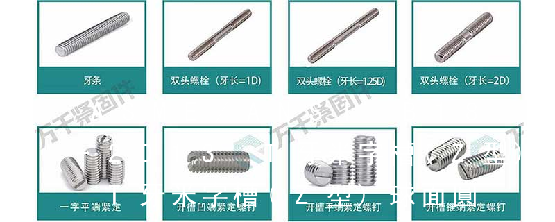 1.機(jī)螺釘 2.自攻螺釘 3.鉆尾螺釘 4.墻板釘 5.纖維板釘 6.木螺釘7.六角木螺釘 8.不脫出螺釘 9.組合螺釘 10.微型螺釘 11.家具螺釘 12.電子螺釘頭型:1.六角頭(hexagon head) 2.六角頭法蘭面(hexagon head with flange) 3.